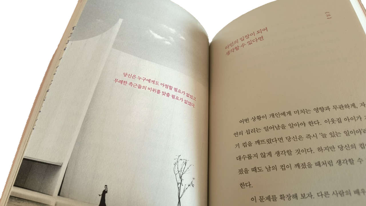 "나를 위해 살지 않으면 남을 위해 살게 된다"는 그의 말은 단순한 문구가 아니라 삶의 진리였습니다. 저는 이 책을 통해 자기 자신을 사랑하고 존중하는 것이 얼마나 중요한지 다시금 깨달았습니다. 언제나 내 주변에 둘러싸인 타인의 기대에 부응하려 애썼던 과거의 내 모습을 반성하게 되었고, 진정으로 내 삶의 주인공이 되기로 결심했습니다.